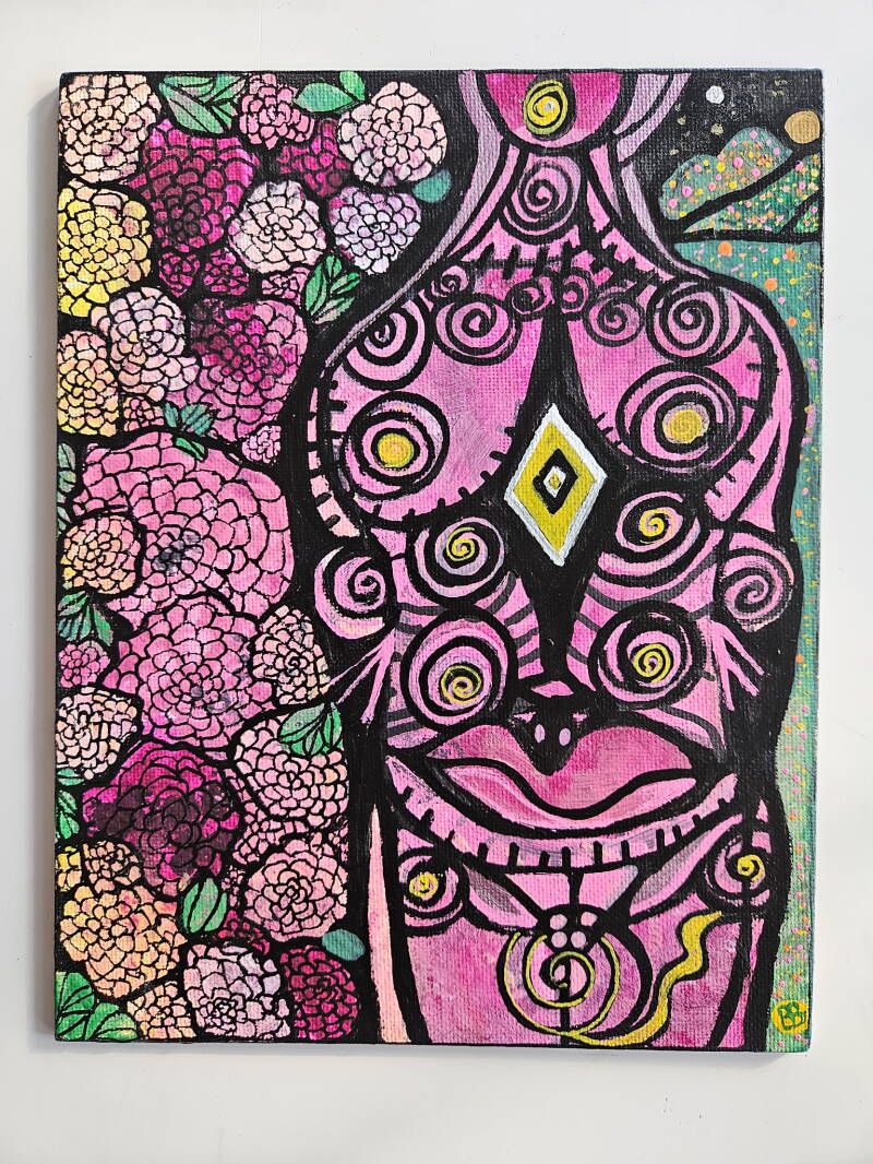 Au cœur de ma pratique, l’art est un acte d’amour, de soin et de reconnaissance, une façon de dire que vous n’êtes pas seul.e. C’est une expression de gratitude pour la possibilité de cheminer à vos côtés.