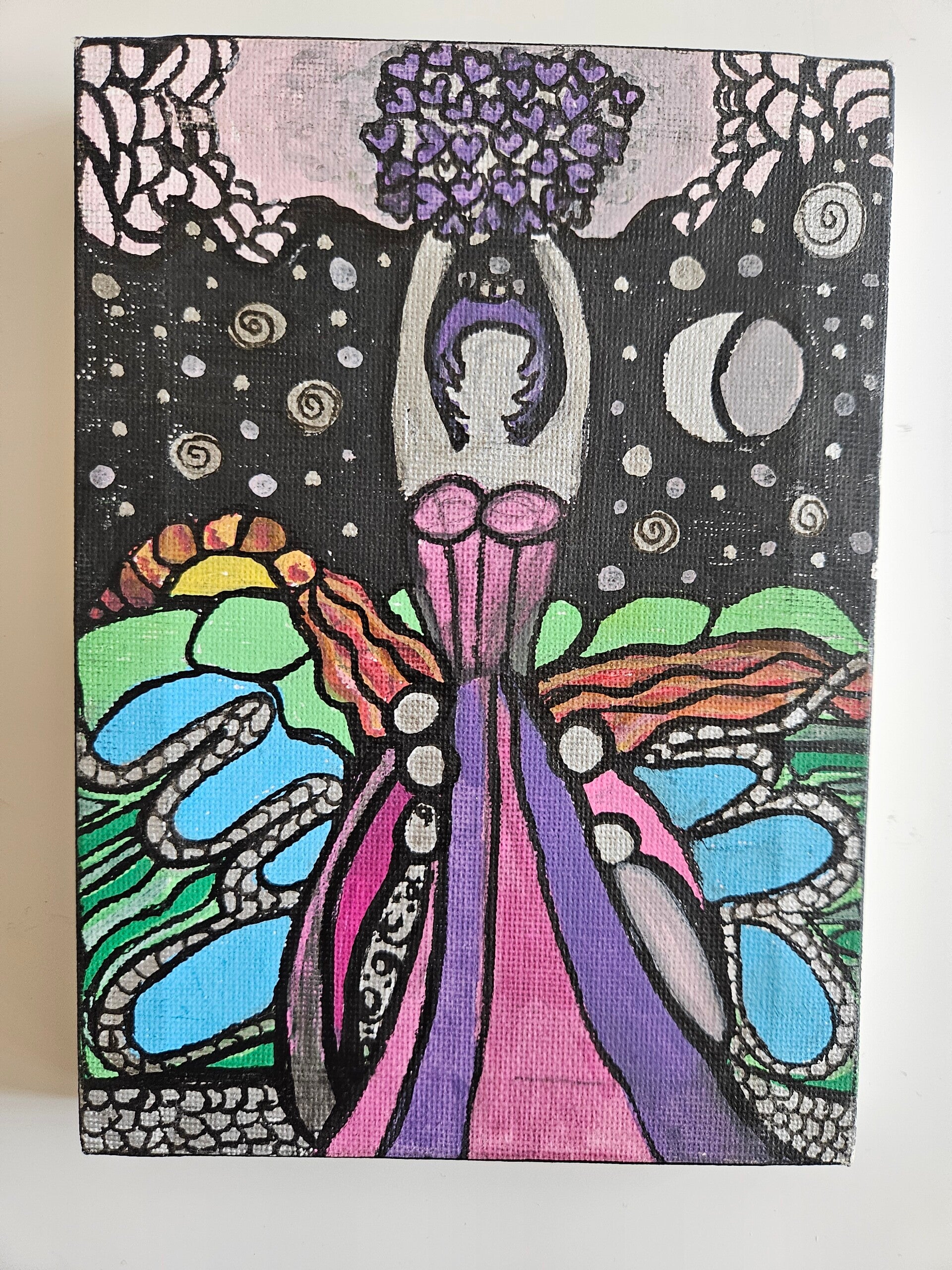 Mes peintures d’Advocacy sont façonnées par mon vécu. Vivre avec la douleur chronique et des troubles d’apprentissage m’a rendue profondément attentive aux luttes silencieuses que tant de personnes portent, souvent sans que cela ne se voie. Mon travail s’ancre dans l’empathie, la dignité et la conviction que chaque personne mérite d’être pleinement vue, entendue et valorisée.